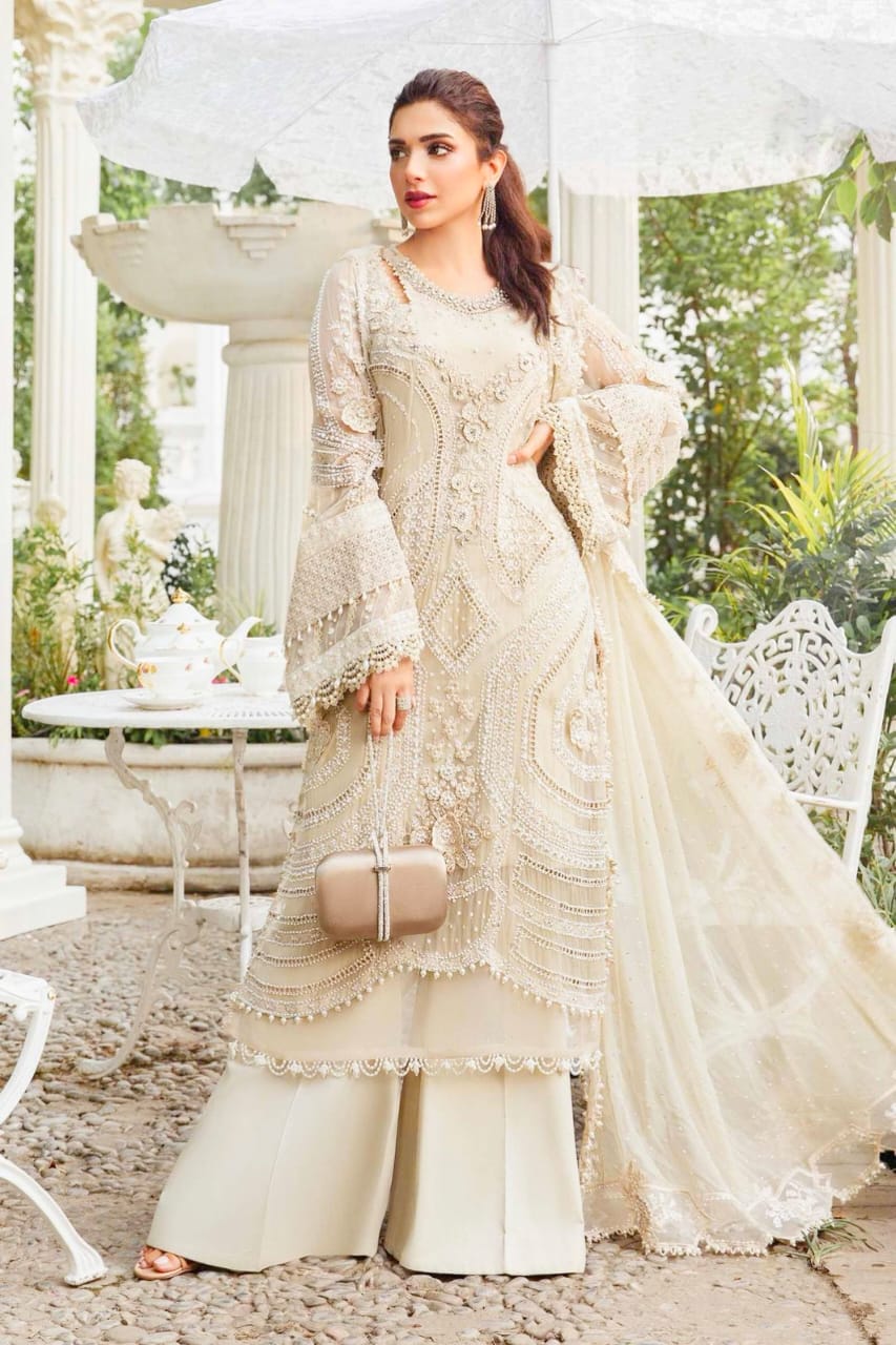 MARIA.B chiffon embroidered sequence 3d flowers luxury unstitched 3pc✓