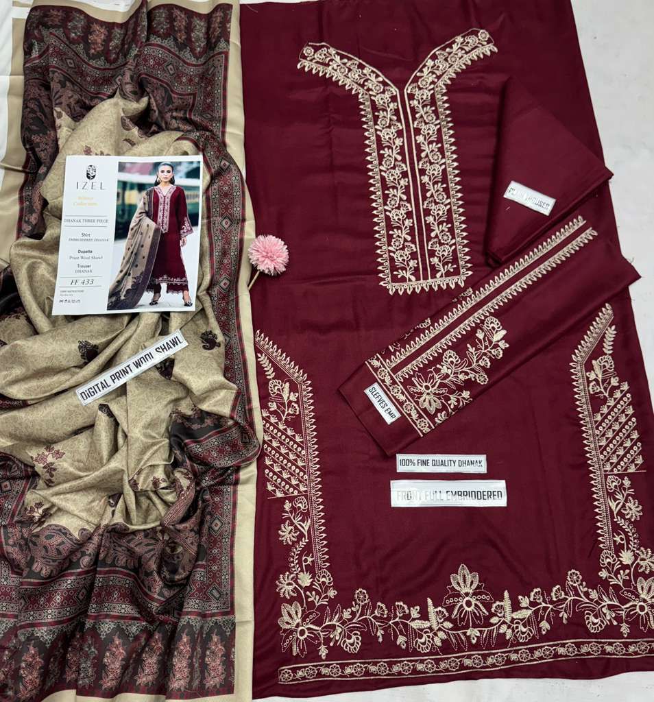 BRAND: IZEL Dhanak Embroided Winter Un-Stitched 3pc✓